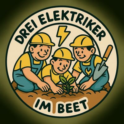 darf sicher sein: Die drei Elektriker im Beet sind gerade wieder mitten in einer Mission zwischen Kabel, Pflanzen und Chaos.