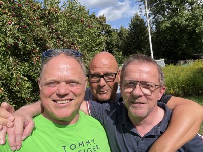 darf sicher sein: Die drei Elektriker im Beet sind gerade wieder mitten in einer Mission zwischen Kabel, Pflanzen und Chaos.